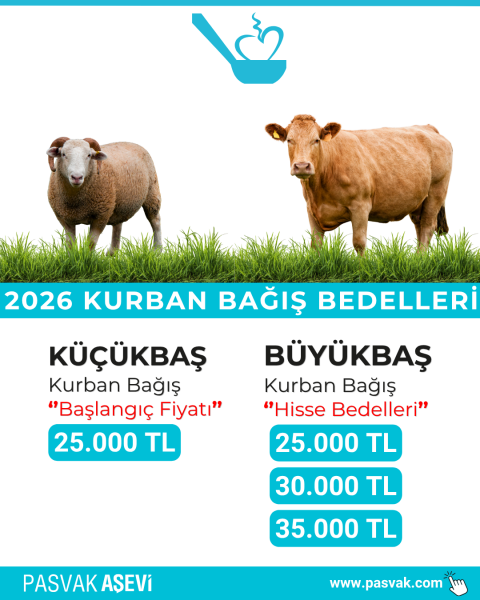 * Küçükbaş kurban bağışınızı seçmek isterseniz, Bağbaşı Aşevi Şubemizin bahçesinde hayvanlarımız hazır bulunacaktır.